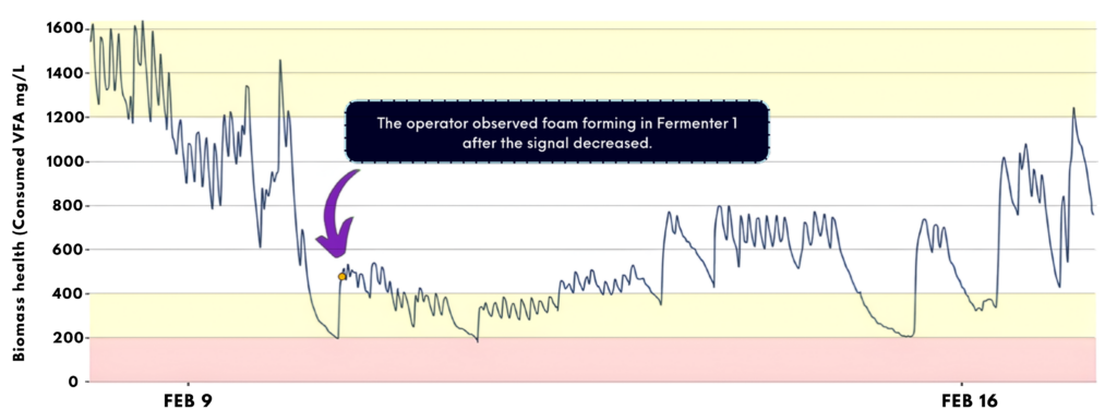 Without intervention, these conditions could have progressed to acidification and a full digester upset.