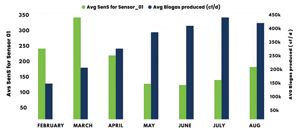Figure 3: Increased biogas production levels with ActiSense sensors installed