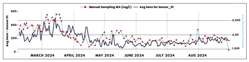 ActiSense delivered a real-time VFA signal that could be related to organic loading, giving operators sufficient lead time to intervene and prevent imbalance.